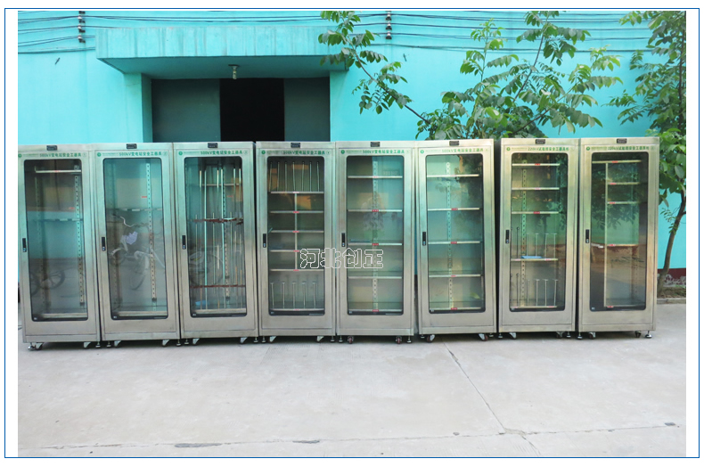 1、柜體是冷軋鋼板卷壓成型,厚度有1.0mm,1.2mm,1.5mm供選擇。柜體表面采用靜電防腐噴塑工藝,顏色為駝灰色,柜門(mén)裝有通體透明鋼化玻璃,透過(guò)玻璃可以看到分類(lèi)有序的工器具。