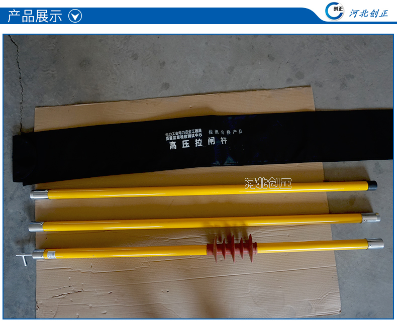1、絕緣桿:采用絕緣性能及機械強度強、重量輕、經防潮處理的環氧樹脂管制成。