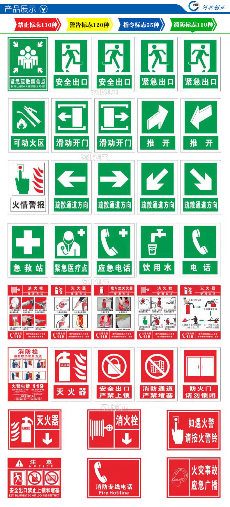 2、產品內容:禁止、指令、提示、線路相位、消防、通信、交通等。