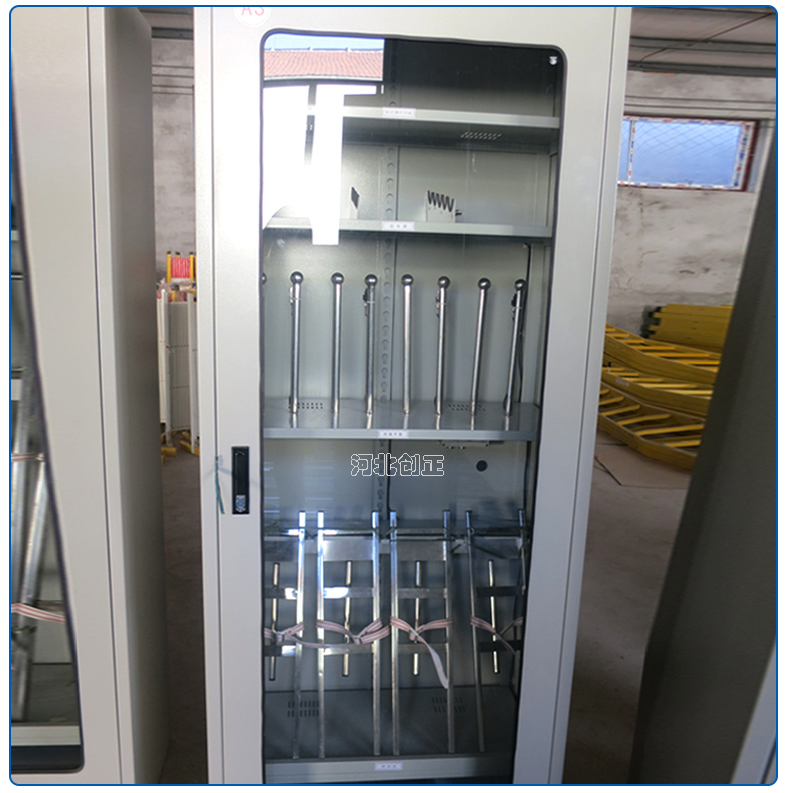 2、智能型安全工具柜裝有溫濕度顯示表和控制操作面板,顯示溫濕度和設備運行狀態。柜底可選擇安裝萬向輪和定位螺桿;柜頂可選擇安裝吊杯,方便運輸。應用于不同溫濕度地區的不同電壓等級的變電站、集控站、線路工區以及電力公司等單位。